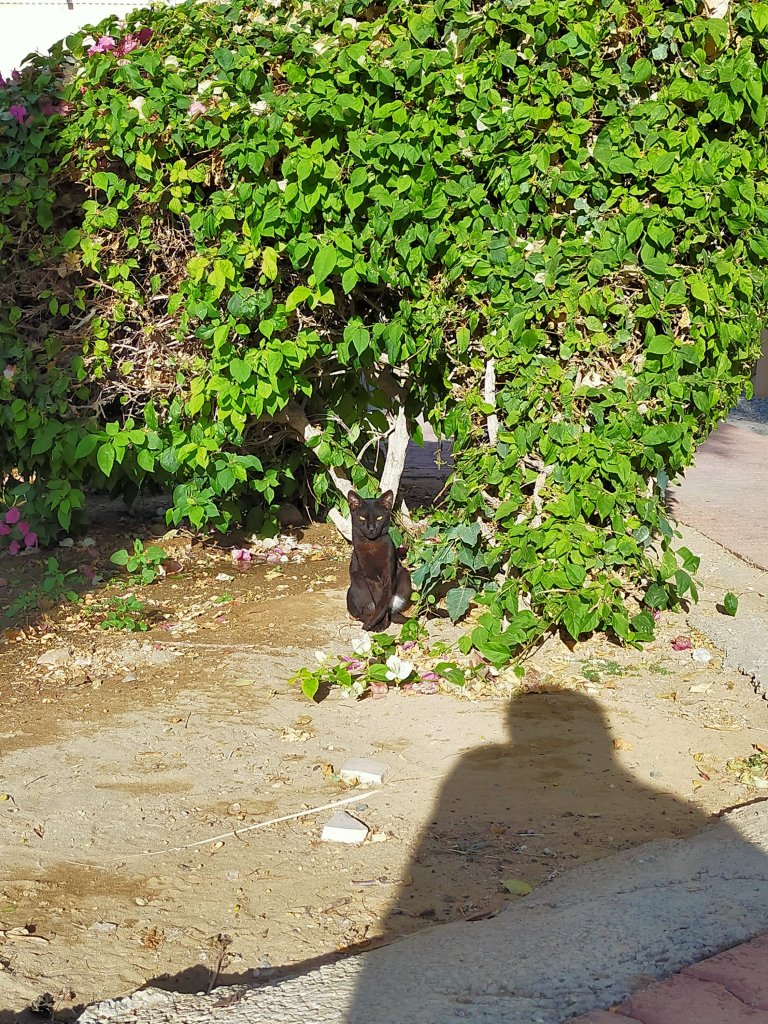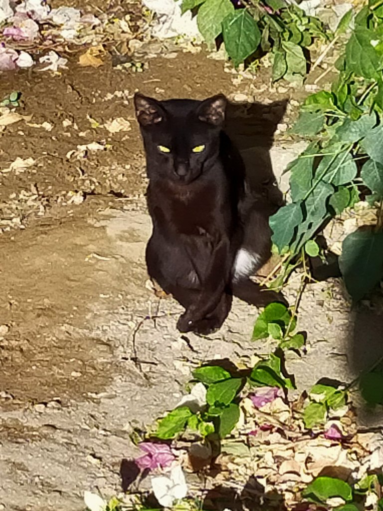 Saw this cat sitting around the bush. Got my attention quickly. Looking so relax.